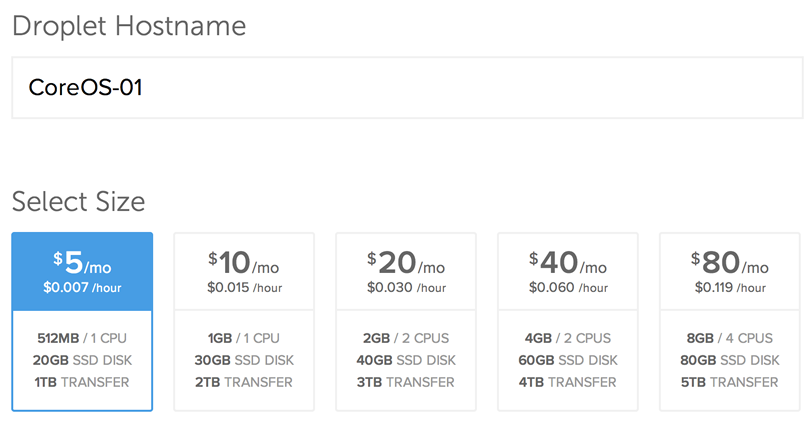 Choosing a size and hostname