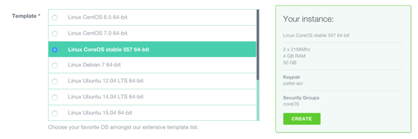 - Choose the Flatcar Container Linux template